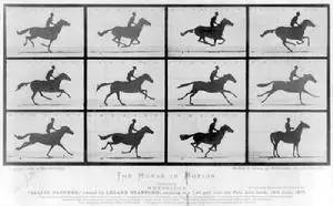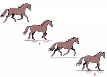 跑步是三节拍(蹄音)步伐,以左跑步为例,踏蹄的顺序为:右后——左后、右前——左前——腾空期;以右跑步为例,蹄音的顺序是:左后肢、左对角肢(左前肢和右后肢同时动作),右前肢,随后是瞬间的腾空期,在跑下一步之前,四蹄全部腾空。速度为:8-10英里/小时。