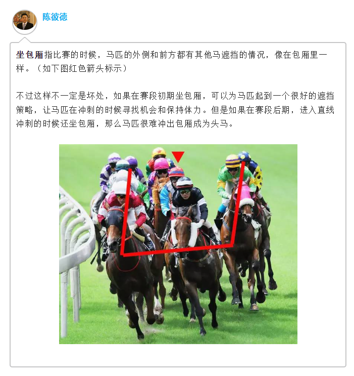 问:赛马有很多专业术语很有趣,像“坐包厢”就很生动地形容了赛马过程中的一种状况,那么“坐包厢”一定对赛驹不利吗?