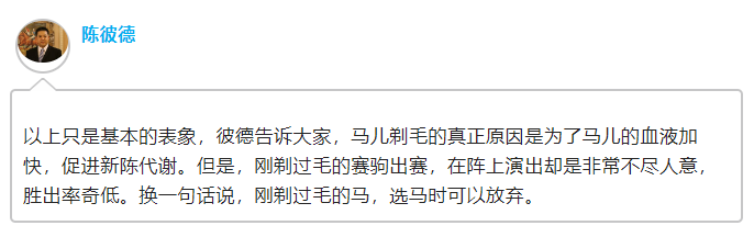 问:夏季和冬季在香港看赛马,有的马的肘部以上明显毛色变浅,这是什么情况?