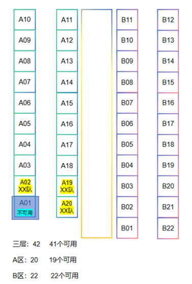 B区(较大区域):一层22个、二层22个、三层22个