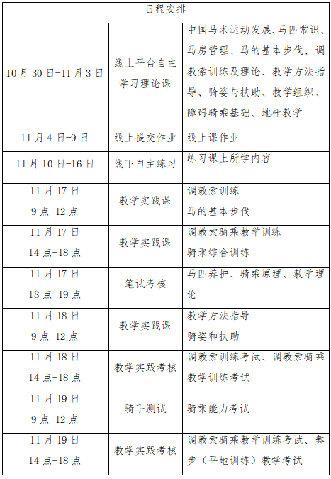 (三)线下辅导和实践考核:2025年11月17日-19日,在湖南超级马力马术俱乐部进行线下集中辅导与实践考核。