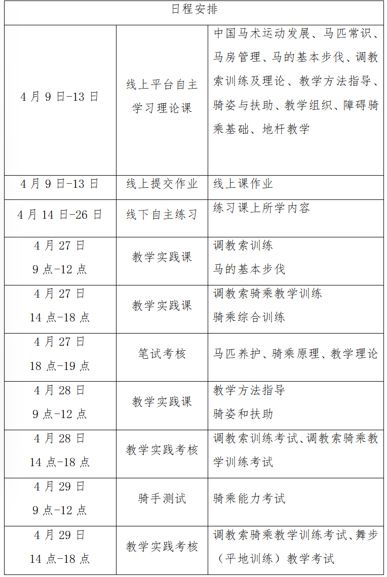 (三)线下辅导和实践:2026年4月27日-29日,在北京西部巨人骑士马术俱乐部进行线下集中辅导与实践。