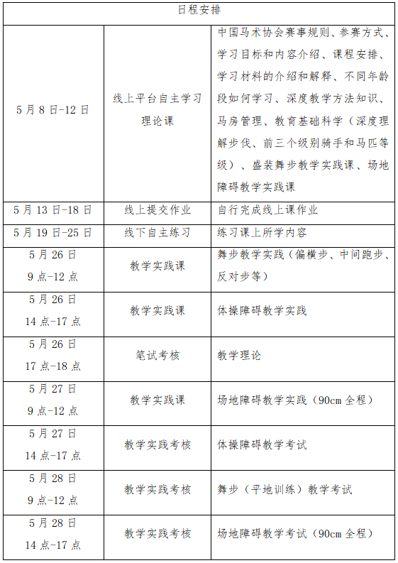 (三)线下辅导和实践考核:2026年5月26日-28日,在山东爱马人马术俱乐部进行线下集中辅导与实践。