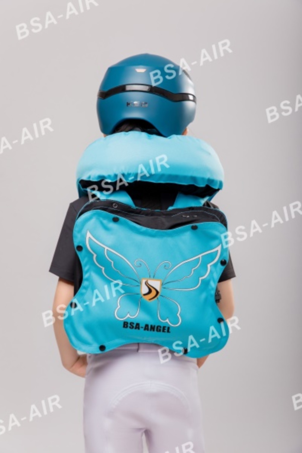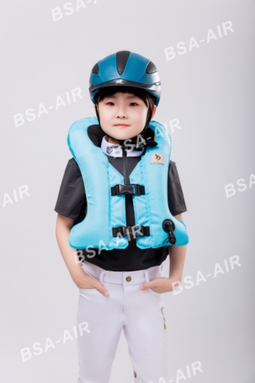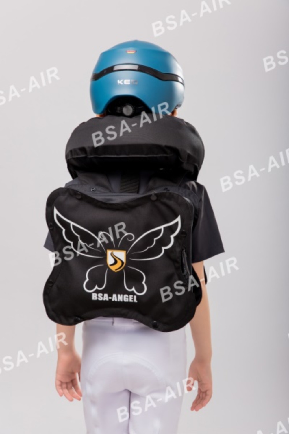 圣盾天使系列全时护甲适用于体重小于25kg或身高低于130cm的儿童,无需气瓶,实时保护!儿童在上马前对气囊护甲进行充气。