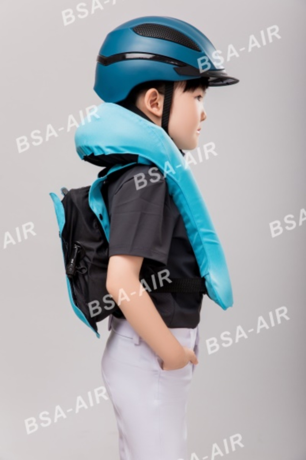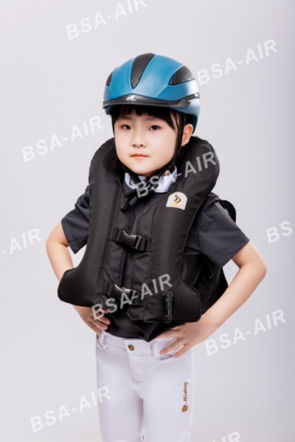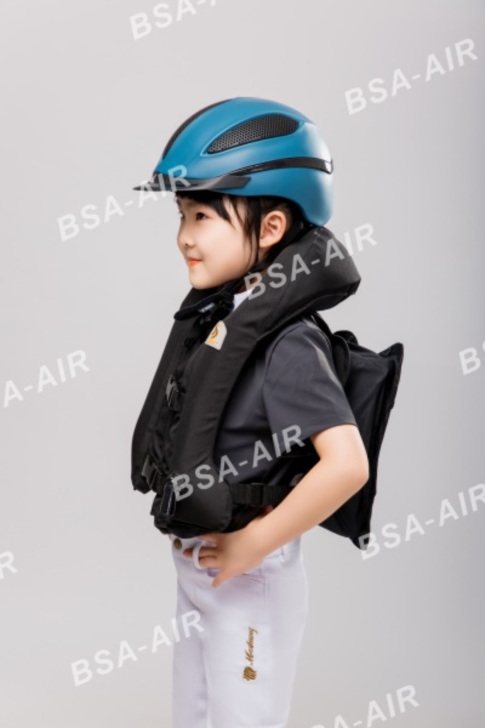 圣盾天使系列全时护甲适用于体重小于25kg或身高低于130cm的儿童,无需气瓶,实时保护!儿童在上马前对气囊护甲进行充气。