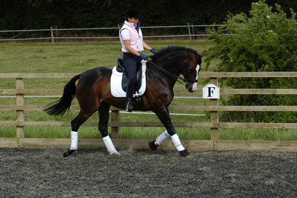 马儿热身并得到充分伸展之后,可以在场地内做大圈的练习。如果它在某一侧缰使用时表现得动作较硬,而且还有些容易受惊的情况,可以用内侧缰让它的身体弯曲来缓解这种状况,但注意不要猛拉缰绳,扶助的动作要平静,否则它会不顾你的动作指令。要做到这一点,你需要在利用内侧腿的同时用手指轻柔地调整与口衔的接触,之后用双腿保持马颈部的正直。对于马来说,这样还会让它在走长边时保持身体的柔软。