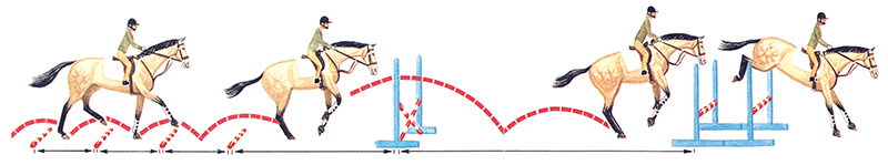 在这个练习中,上身的任何动作都将会影响马匹跨越最初几个杆。