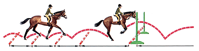 骑手必须集中精力保持自身的姿势,保持平衡,在马起跳时身体不过多前倾,应保持抬头向前看着最后一个障碍栏,重心必须落于脚跟,这样在不改变骑姿的情况下能使马匹轻松跳越。这是一个很好的训练。