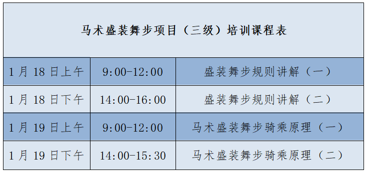 为了普及和发展马场马术,响应广大马术爱好者对盛装舞步日益增长的需求,我们将在1月18日-19日在线上举办马术盛装舞步(三级)培训。对希望能在盛装舞步项目中担任执裁工作的有志之士,提供进一步深造的机会。
