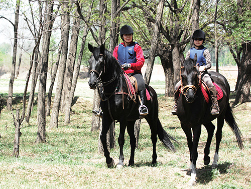 想掌握正确的平衡,首先要从慢步练起,慢步还要从小幅度到大幅度。在马慢步时,人能够放松了,感觉到自己整个身体前后的平衡和左右的平衡都找到了以后,再做小幅度的快步练习。慢步和快步都没问题了,功到自然成——跑步时人坐在马背上就会象坐在沙发上一样,很舒服。