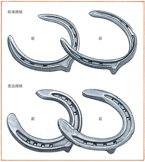 宽边蹄铁:对蹄壁、蹄底和蹄踵提供更多的保护。