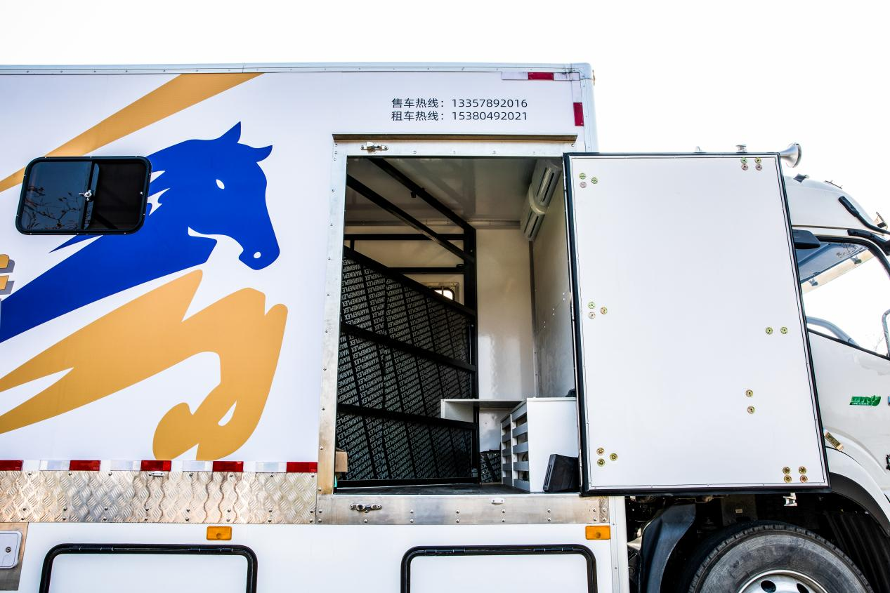赛马运输车的马厩仓空间宽敞舒适,直载和斜载方式都有,但为了保证马匹在运输过程中“不晕车”,以直载居多。