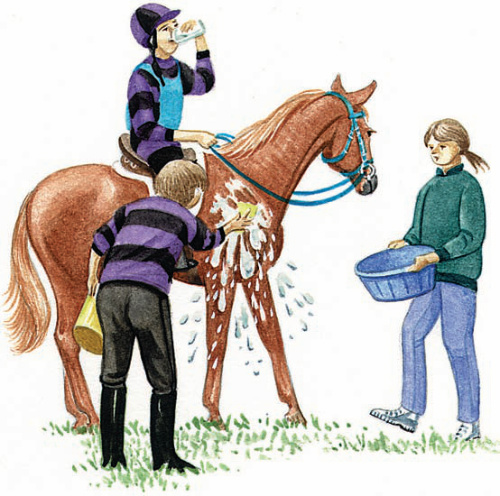 平时模拟后勤人员在中途停留点提供服务的练习是个好办法,这样你的助手就会习惯于为马提供饮水、洗浴降温,如果你们经过了一段很长且多石的路,他们可能还要检查马的蹄部。这种做法会使你骑乘感到有信心,马也会习惯于这种做法,按照这个程序进行训练,你的助手也更加了解马。