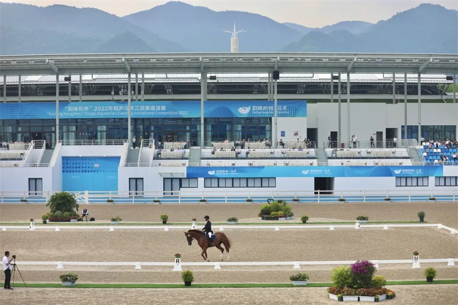 此次“韵味杭州”2022年桐庐马术三项赛邀请赛的比赛场地桐庐马术中心是杭州亚运会马术项目的比赛场地,本次邀请赛也是场馆建成后的首场比赛。