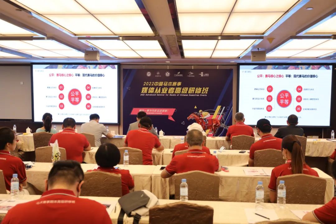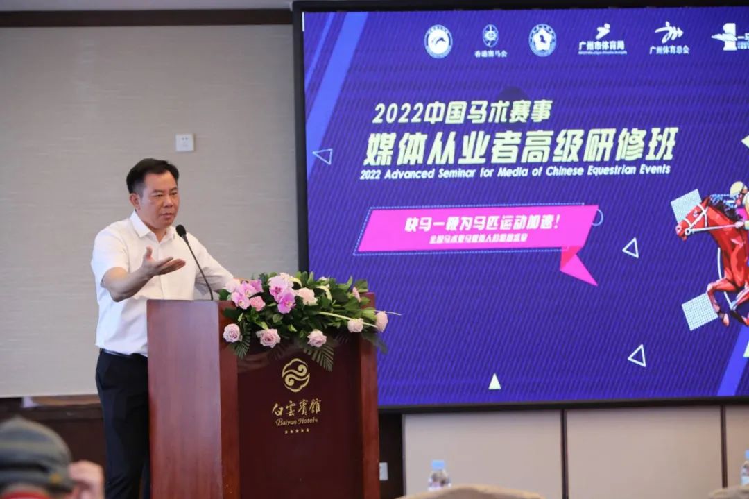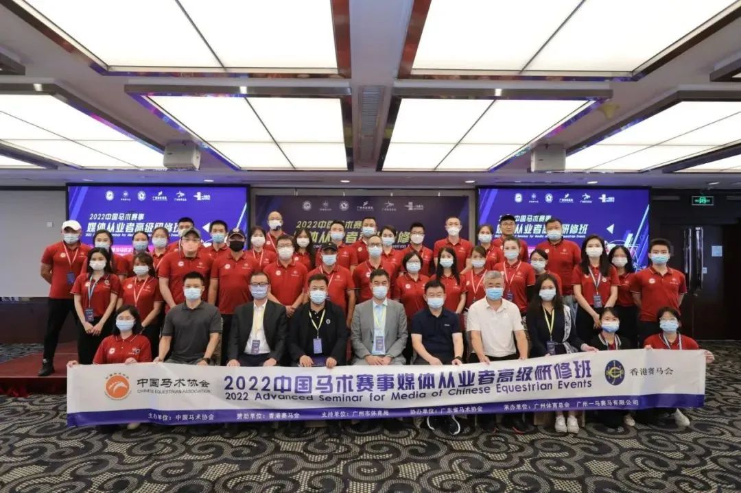 “2022中国马术协会马术赛事媒体从业者高级研修班”于6月15-16日在广州白云宾馆举行,本次研修班主办单位为中国马术协会,活动得到了香港赛马会、广东省马术协会、广州市体育局、广州市体育总会的大力支持。