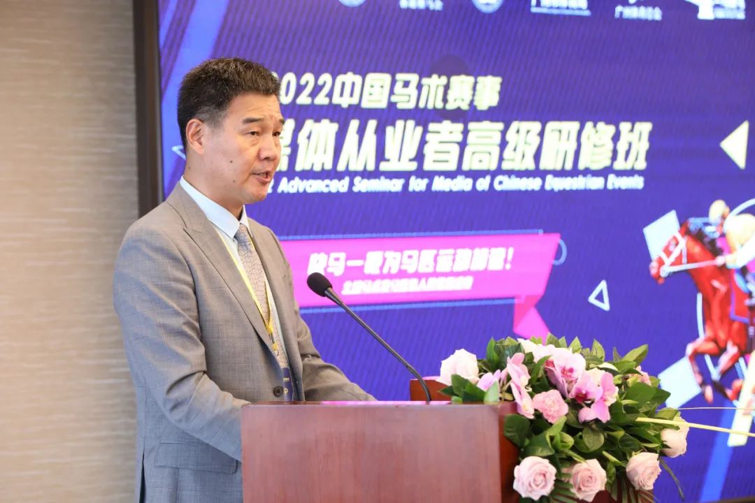 广州市体育局也对本次媒体研修班给予了大力支持,广州市体育局、广州市马术协会林文戈在随后的致辞中表示,近年来党中央和国务院高度重视马产业的发展,国务院《关于加快发展体育产业促进体育消费的若干意见》、国务院办公厅《关于加快发展健身休闲产业的指导意见》,均对马术运动发展提出明确的要求,这次中国马术协会在广州举办2022马术赛事媒体从业者高级研修班很有意义,有助于马术运动的宣传推广,推动打造马术运动的宣传矩阵,为国内马术运动的健康发展营造良好的舆论氛围。