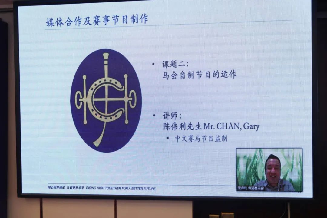 6月16日上午9点,香港赛马会的三位讲师利用线上直播的方式,分别为学员们讲述了《马会与媒体的合作关系》、《马会自制节目的运作》两个课题。香港赛马会赛事资讯经理张美德从赛马媒体的发展环境、受众群、专业度等方面介绍了香港赛马媒体的发展;香港赛马会公共事务经理杨铭豪列举了香港与海外地区的赛马媒体报道风格,从地域、赛事分析、赛事报道等比较两地赛马媒体关注的焦点,介绍赛马媒体的主要工作;香港赛马会中文赛马节目监制陈伟利向学员们介绍了赛事直播节目、赛前节目、赛后节目、海外赛事节目四档马会自制节目,并播放了节目片段向学员们介绍这些马会自制节目如何运作。讲师们生动丰富的内容赢得了线下线上学员们的称赞。