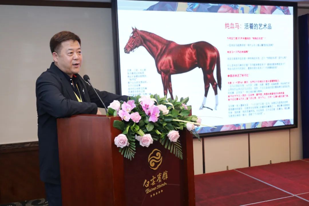 ▲中国马术协会商务部部长、中国速度赛马委员会常委副主任陈九庆在开班仪式上致辞