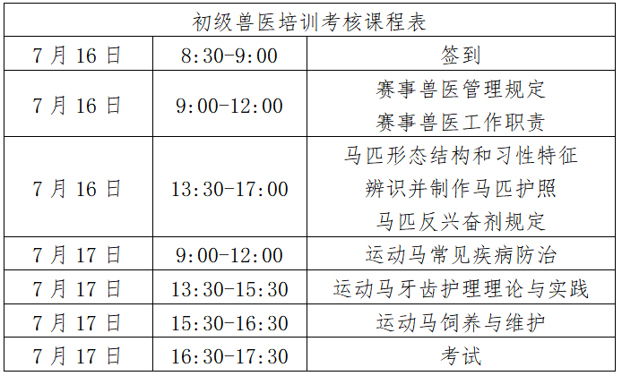 根据马术专业人才培养计划,原定2022年4月9日-10日在国家马术学院举办运动马兽医培训考核活动因疫情延期。目前形势趋于平稳,继续接受报名,将于2022年7月16日-17日恢复举办,现就本次培训考核相关事宜通知如下: