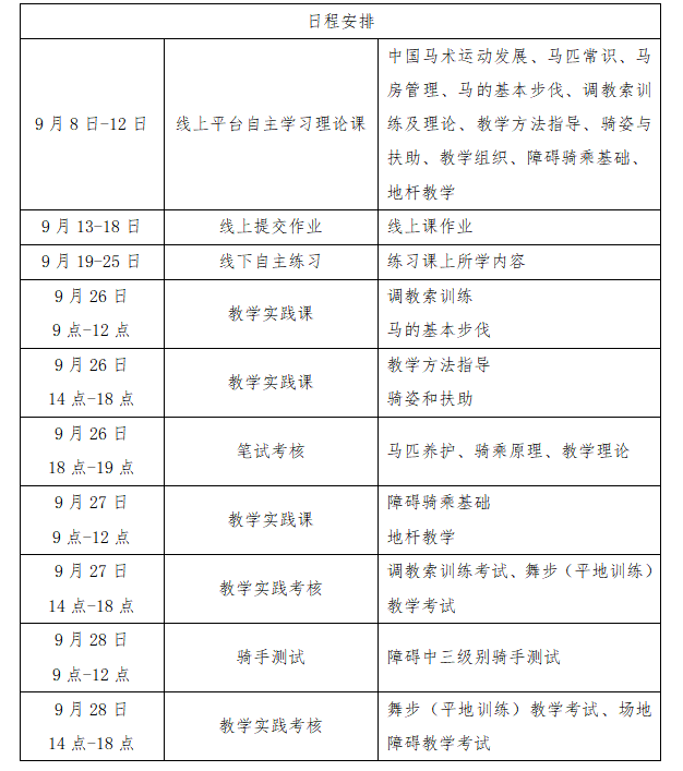 (三)线下辅导和实践考核:2022年9月26日-28日,在无锡阳山梦想马术学府进行线下集中辅导与实践考核。