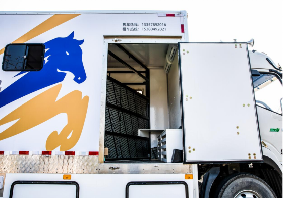 夏季运输:马匹运输应注意持续保持箱体内的自然通风换气,一般在高温但低湿度的情况下比在温度不太高但湿度很高的情况下要舒适。一般在45%-55%的相对湿度下感觉最舒服。湿度过高会影响马匹调节体温的排汗功能,会感到闷热。一般湿度超过80%需提高警惕,对运马车箱体内的马匹安全已具有一定危险。因此在马匹运输途中需时刻注意箱体内湿度的变化。