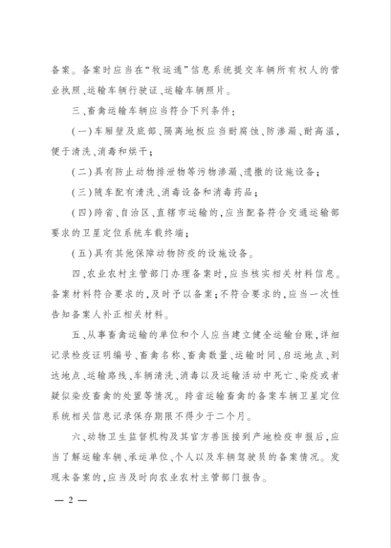 从公告内容来看,对畜禽运输环节动物防疫要求的范围越来越广,越来越严。由于近两年70%的重大动物疫情是在违规调运动物的运输环节发现,活体动物调运是动物疫病跨区域传播的重要途径。因此对运输环节动物防疫的高标准、高要求,是我们当前重大动物疫病防控和公共卫生安全保障的需要,预计未来政策对整个运输环节的防疫要求还会持续提升。