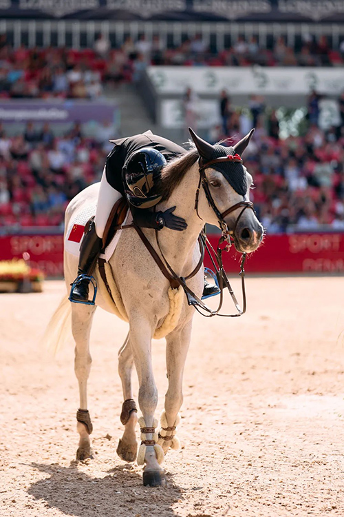 “第二场第二轮的比赛,我是第一个出场的骑手,在没有任何人可以参考的情况下我必须要在走路线的时候就制定好最终计划。我在走路线的时候也和一些其他骑手进行了交流,但整个路线的不确定性非常大。也许是我的焦点都放在后面难度更大的障碍上面,从而在我认为比较‘简单’的第二道砖墙上出现了失误。在拒跳后,我重新尝试并成功跳跃。对我而言,虽然完成全程又会增长一些经验,但我们已经没有进入个人决赛的可能性,同时我的马在过去两天的表现也已经证明了她不仅是目前全世界最好的马之一,并且未来还有无限可能,所以我决定退出了比赛。总体而言,世锦赛三轮比赛,每一轮都是挑战。14道障碍、17次跳跃,路线很长,障碍高度和伸展障碍的宽度都非常大。”