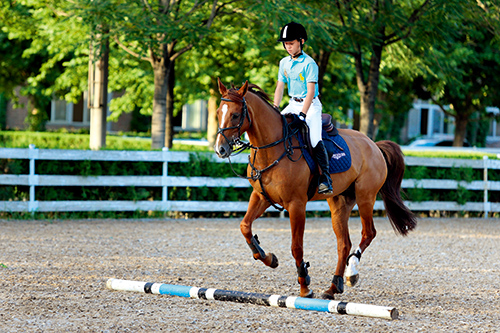 已经学会用正确的骑马姿势,用缰绳联系,学会了怎样控马和快步,骑手就可以进行更多有意思的练习以尽快进入下一阶段。用地杆和路障的障碍课程帮助骑手正确地控制和策骑他们的马。