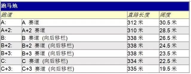 据了解,不同的赛道表示赛道从内栏到外栏移动了不同的距离,也就是代表了不同的宽度,有的还有不同的直路距离。这是全世界大部份马场正常的模式,接下来我们就以我国香港为例,探讨一下。