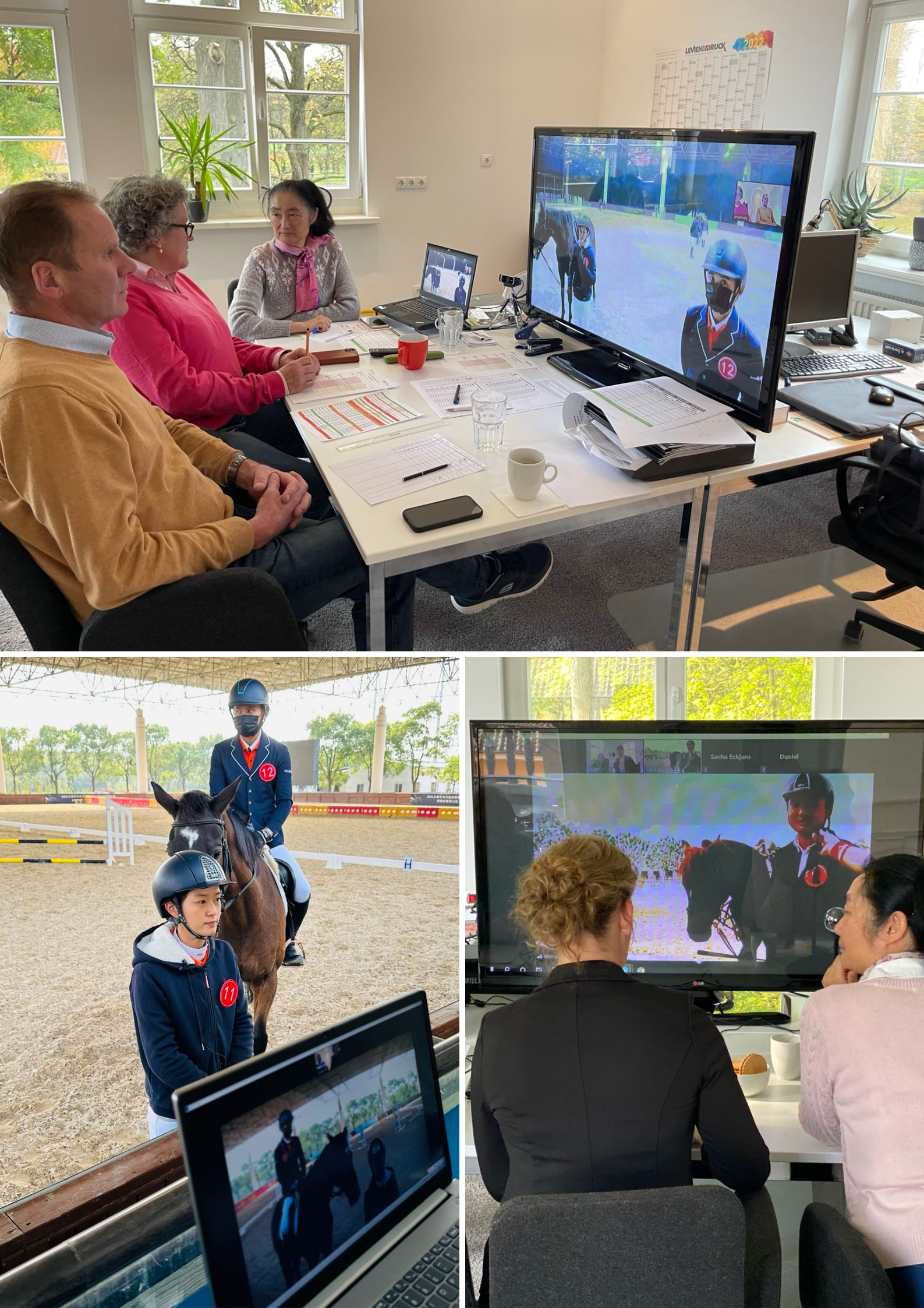 考核过程中,德方老师通过视频的方式远程对于学员进行了测评及提问,其中提出了大量理论如何结合实际训练的问题,并结合本次考核中如何处理学员骑乘出现的问题,针对性的对学员给与考验。发现问题,处理问题,通过合理的方式方法来提高骑手的骑乘水平,是二星级教练员必须要达到的要求,所以掌握理论知识,并真正的理解这些内容,是考官关注的重点。