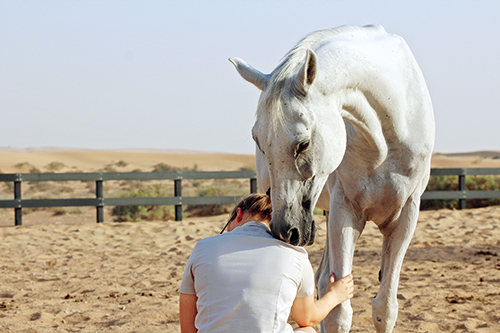 我意识到我需要赢得埃迪的信任。于是,我花了大量的时间在马房工作,当然还经常准备了很多给它的零食。后来,我编了一个只属于我们俩的口哨,当它每次听到我的哨声并向我走过来时,就会获得甜甜的胡萝卜的奖励。我会带着胡萝卜坐在它的围场里,陪着它,吹口哨,与它说说话。我经常会蹲下来,身体面向它,以展示我没有威胁,也刚好能满足它对我的好奇心。