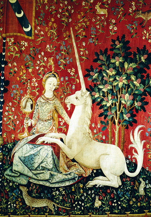 这幅壁毯是一组哥白林壁毯中的一幅。其中的五幅分别表现了人的五种知觉,第六幅《视觉》则表现了爱与愿望。(马术杂志)