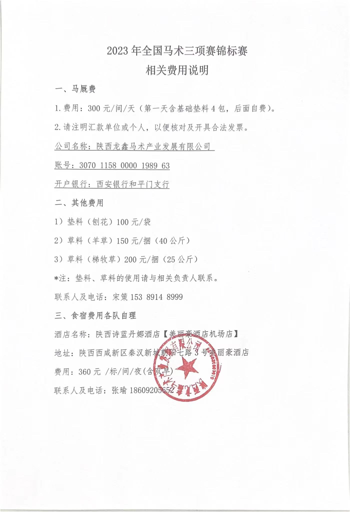 2023年全国马术三项赛锦标赛将于2023年4月7日(周五)至9日(周日)在陕西省西咸新区秦汉新城秦汉国际马术中心举办。为使比赛顺利进行,现将赛事有关事宜通知如下:
