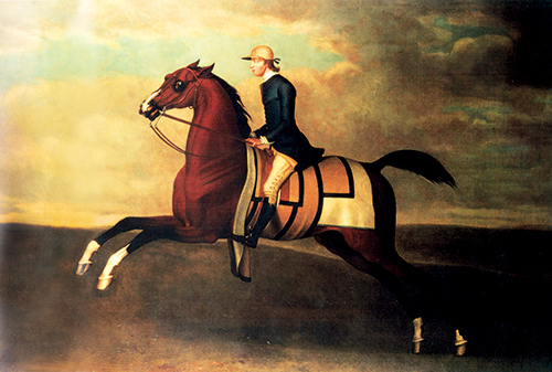 这幅《飞驰的奇尔德斯》创作于1740年,是他后期的代表作。之所以可以清晰地辨认是西摩的后期作品,不仅仅因为其标注的作品完成时间,而是源于西摩本人鲜明的创作风格。作为一个非常热衷于绘画马匹的艺术家,西摩在创作初期工作方式有一点特别:对于自己笔下的马匹,他追求每一个细节的极致与完美,但这种执着的追求只关乎马匹,他甚至不会花费过多的精力去点缀马鞍、鞍垫,甚至是骑手,也只有在他后期的画作中才有这些元素的体现。画作中飞驰的骏马是纯血马“奇尔德斯”,它由上校伦纳德·奇尔德斯养育,因而得名。之后它为第二位主人德文郡公爵二世立下了汗马功劳,在一场盛大的赛马会上取得了骄人的成绩。(马术杂志)