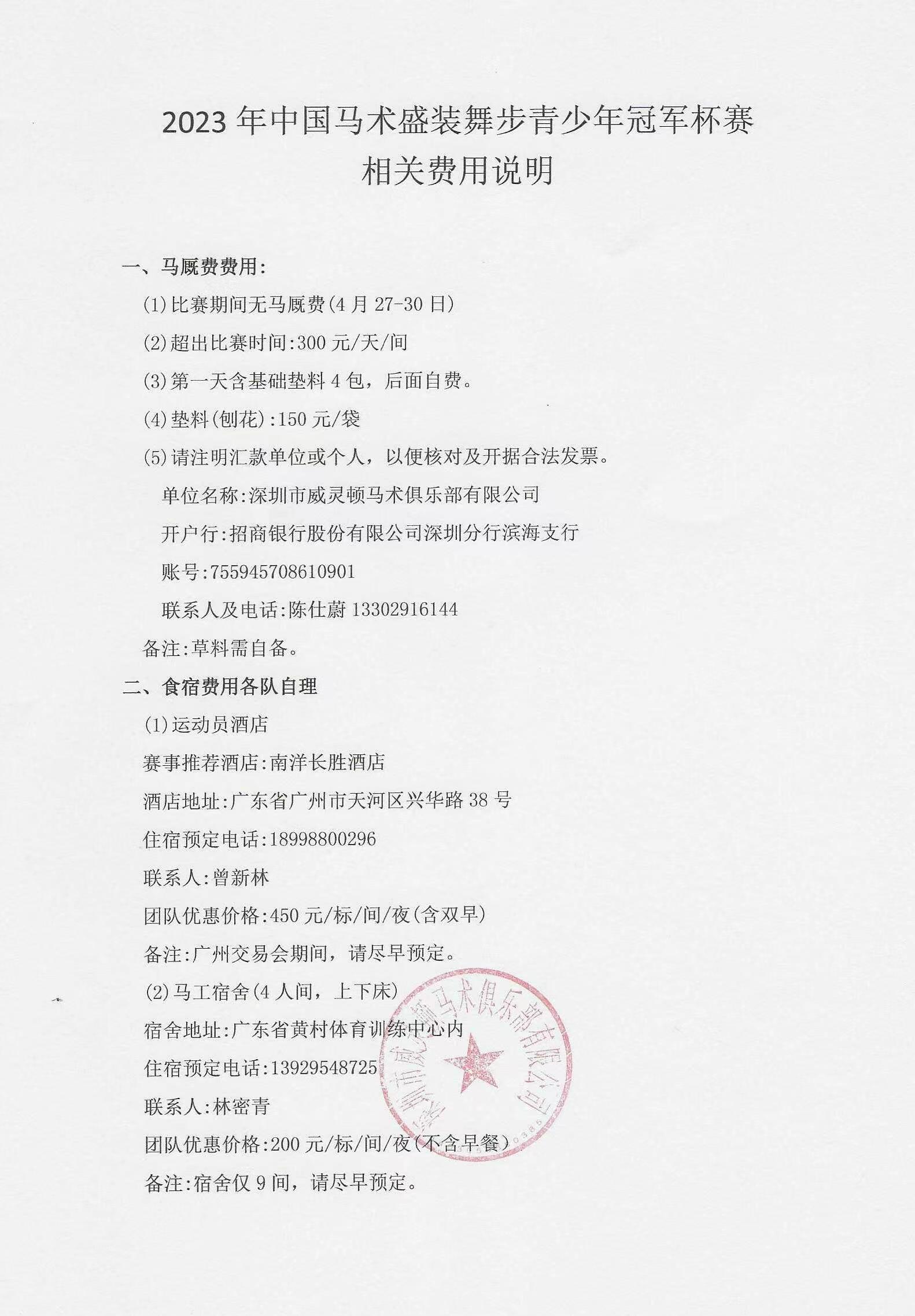 (四) 本次比赛不提供草料,请各代表队自备,如有需要可联系承办方,收费标准见附件。