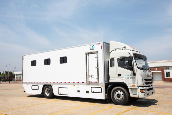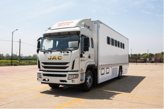 底盘采用江淮德沃斯,发动机康明斯,总质量18t,轴距5800mm,排量4L,马力194PS,动力强劲,净扭矩717Nm/r,国六排放标准,带有ABS。