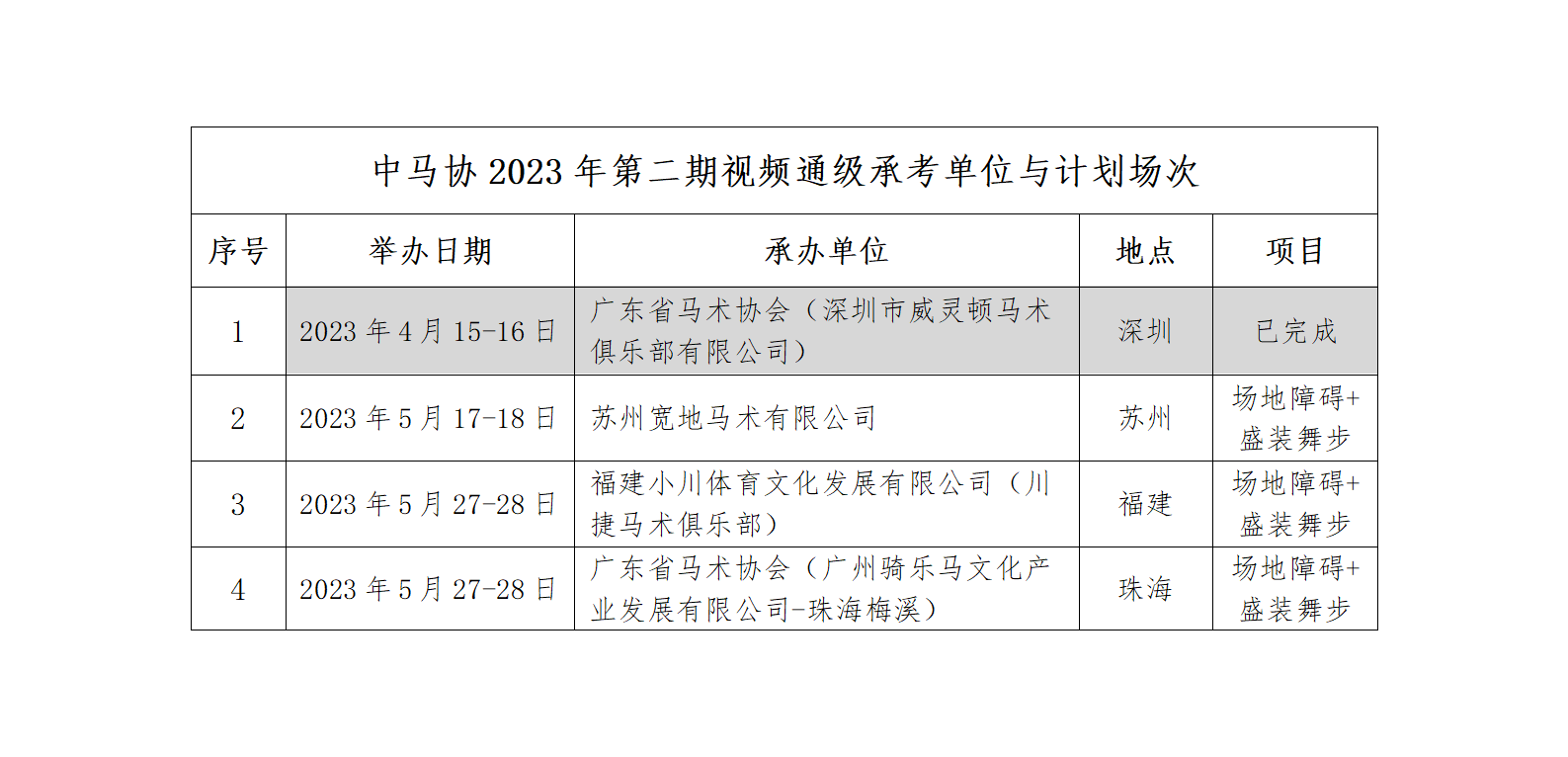 (五)在本期所有承考单位考核视频拍摄上报完成后,中国马术协会组织考官评审打分,通过考核的等级名单将在官网公示。
