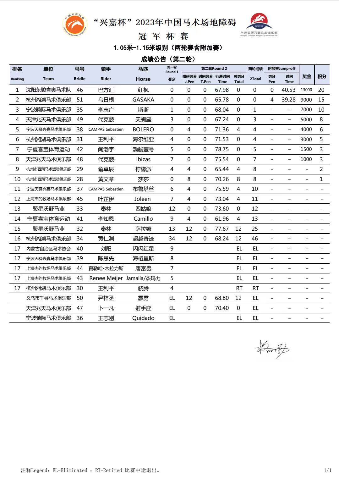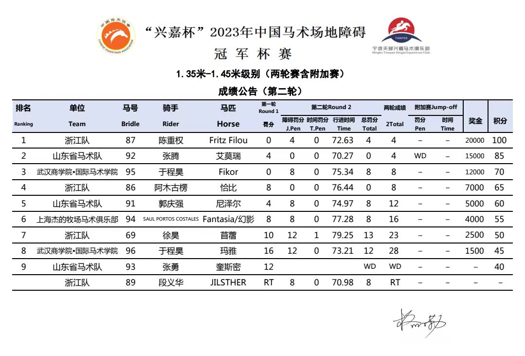 “兴嘉杯”2023年中国马术场地障碍冠军杯赛顺利完赛