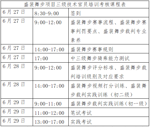 2. 盛装舞步三级技术官员培训考核收取报名费:1650元,如有学员因盛装舞步中三级测试未通过无法参加后续实践考核将退还考核费800元,租马费不退。