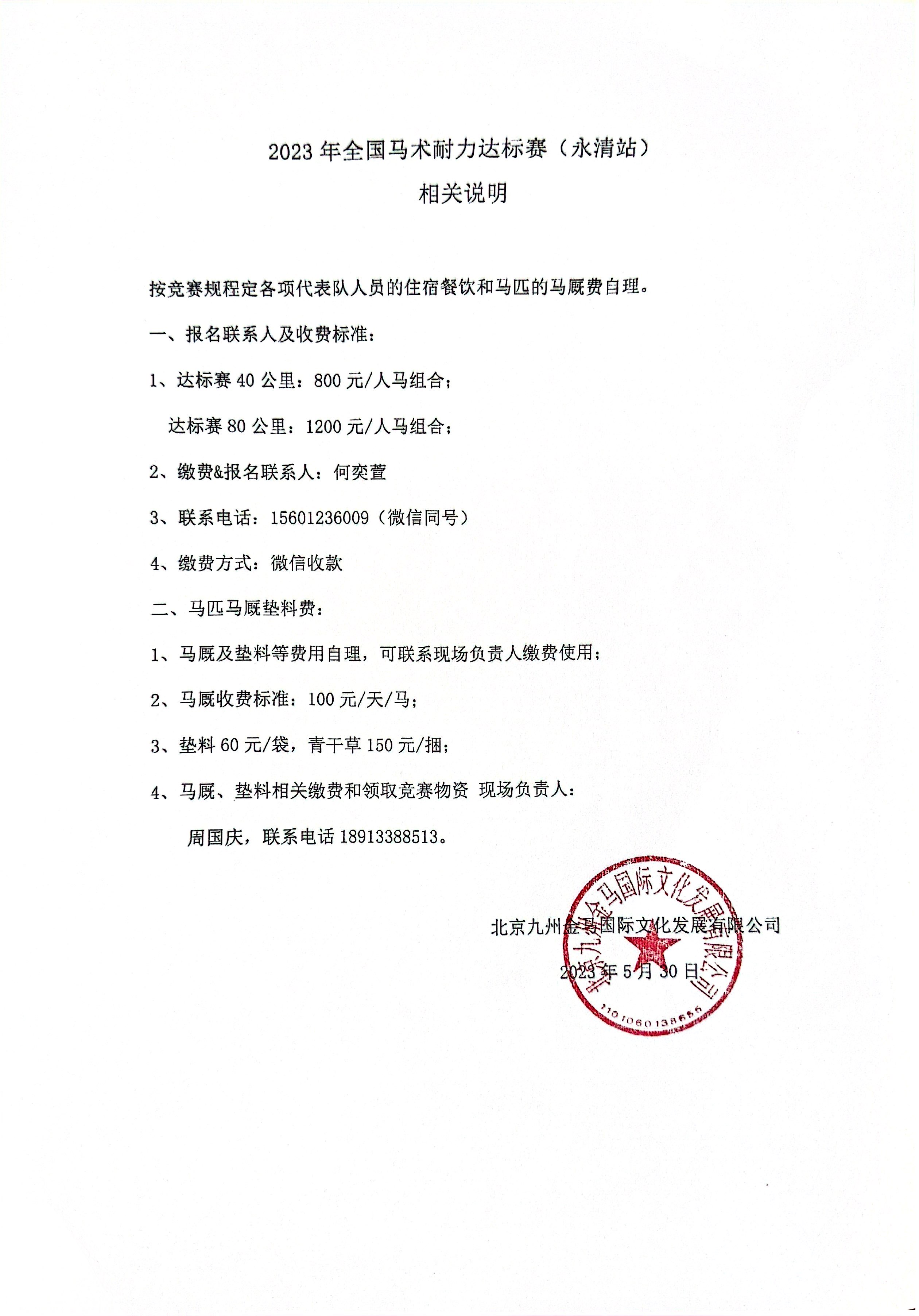 中马协关于举办2023年中国马术协会40公里、80公里耐力达标赛(永清站)的通知
