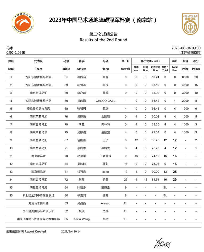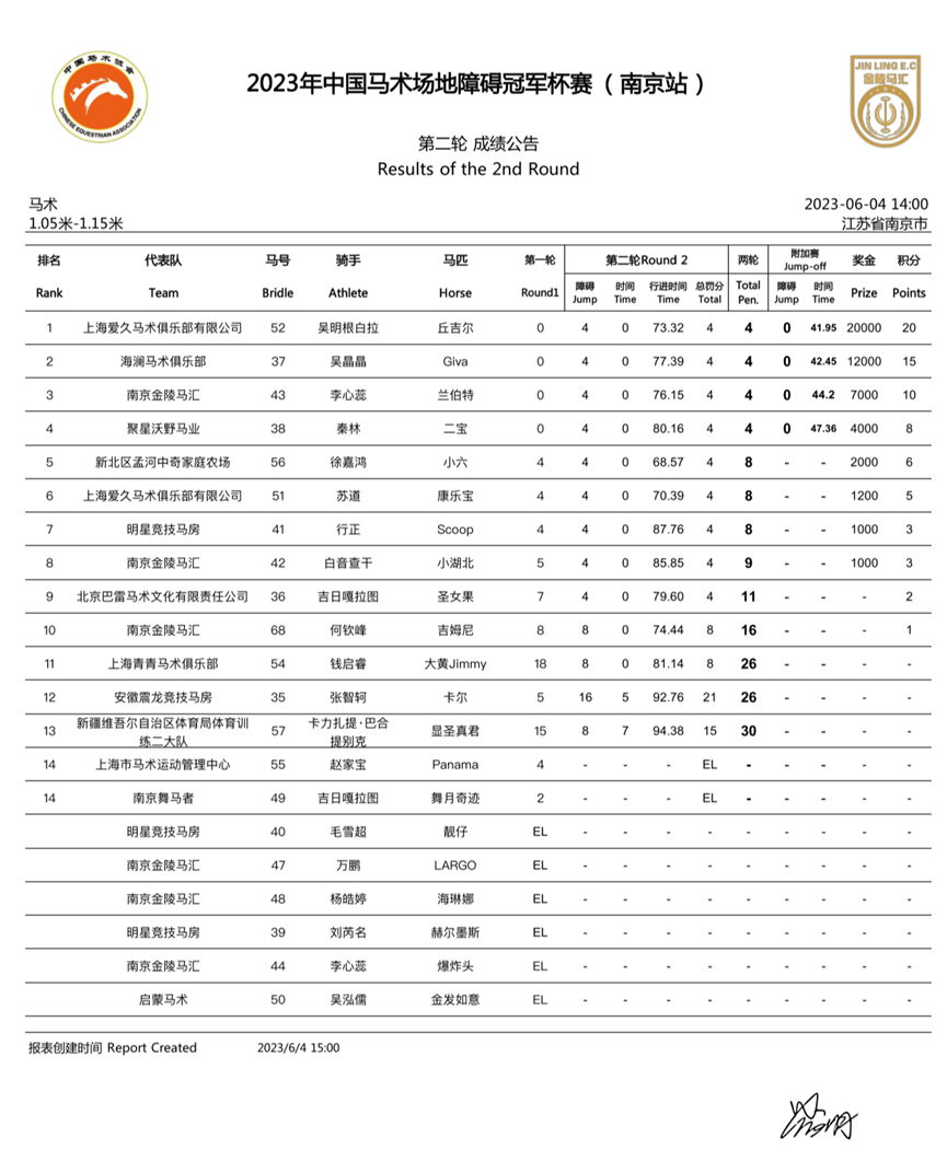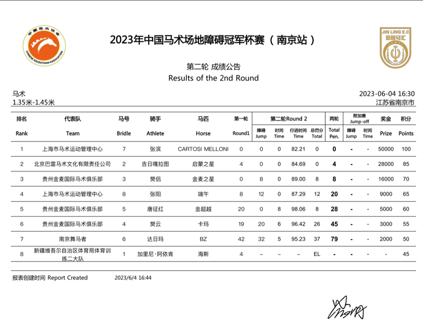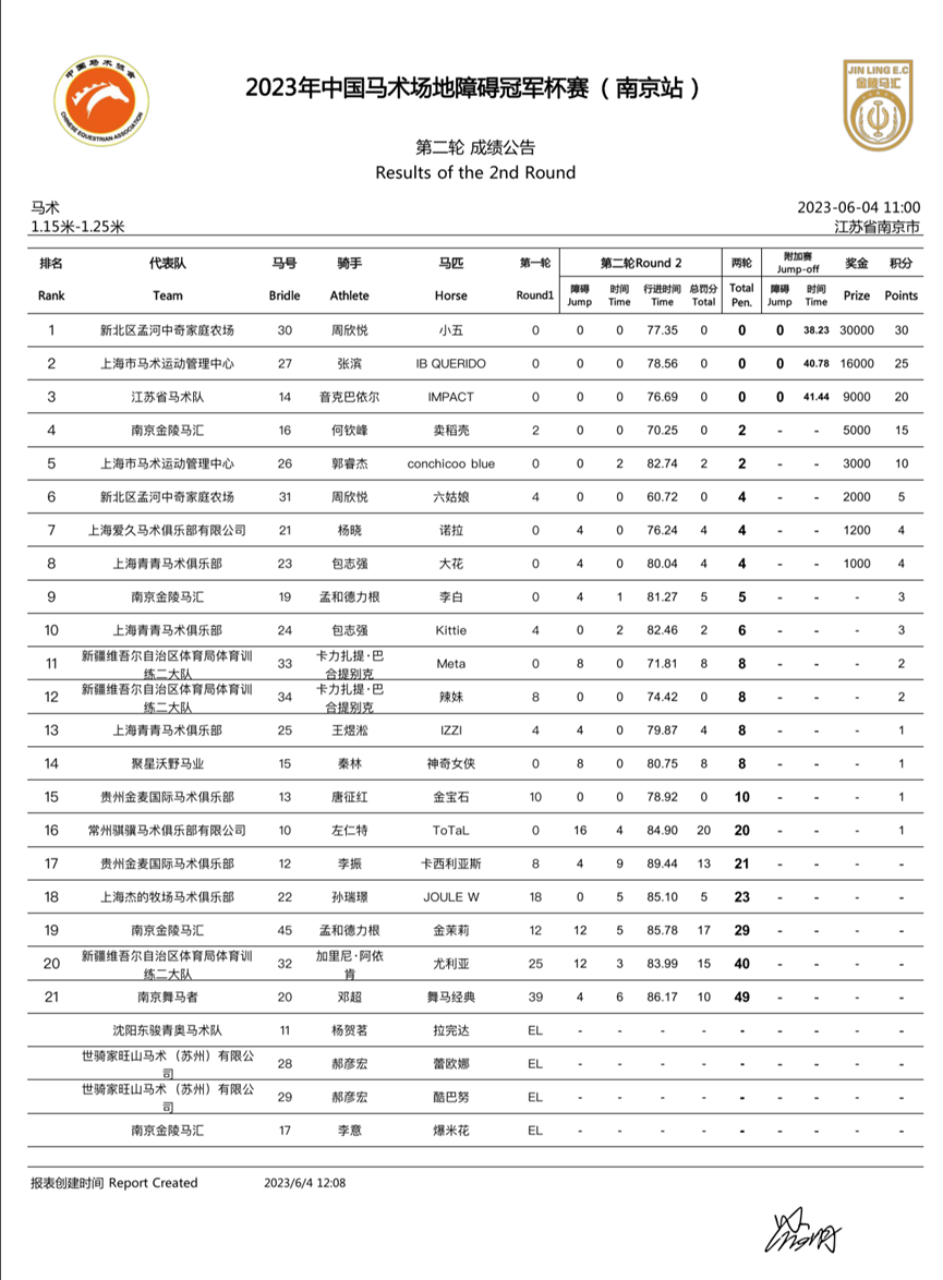 至此,2023年中国马术场地障碍冠军杯赛(南京站)完成全部级别的比赛,全部人马平安,顺利完赛。