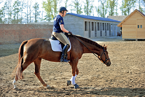 如果马容易出现逃避障碍或者拒跳的问题,那么热身练习的首要任务就应该放在调整它的服从性和正直这两方面。不妨沿着场地的长边进行热身,这样可以判断马是否有向左或者向右侧偏的毛病。骑手应该利用这段时间去放松,不必多虑马会在跳障碍的时候作何反应。