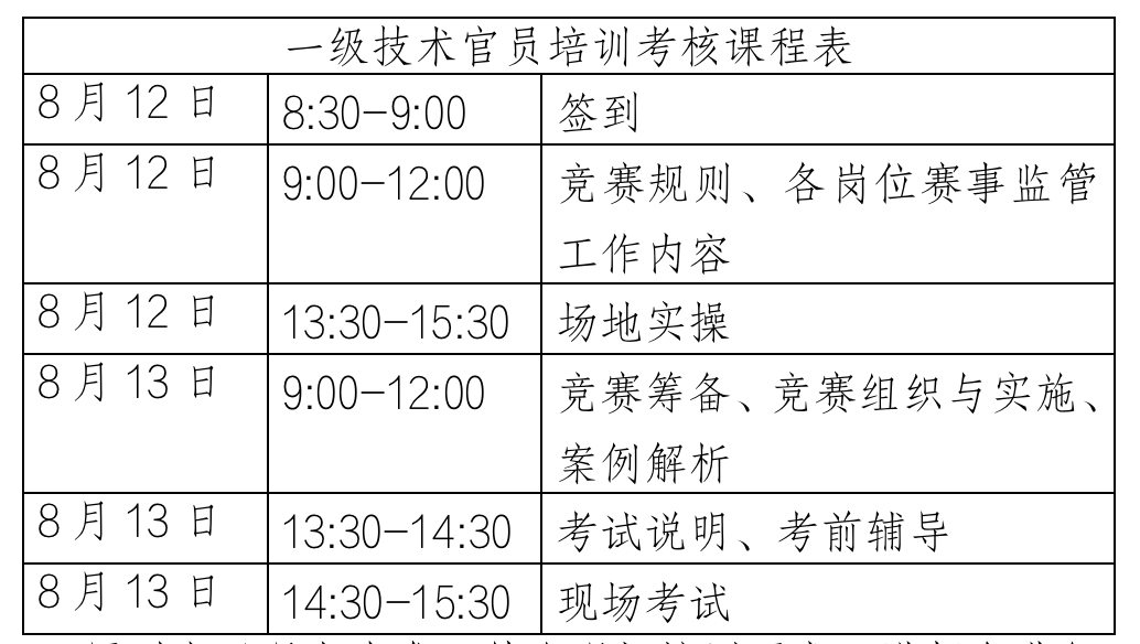 一、本次技术官员培训考核认证项目: