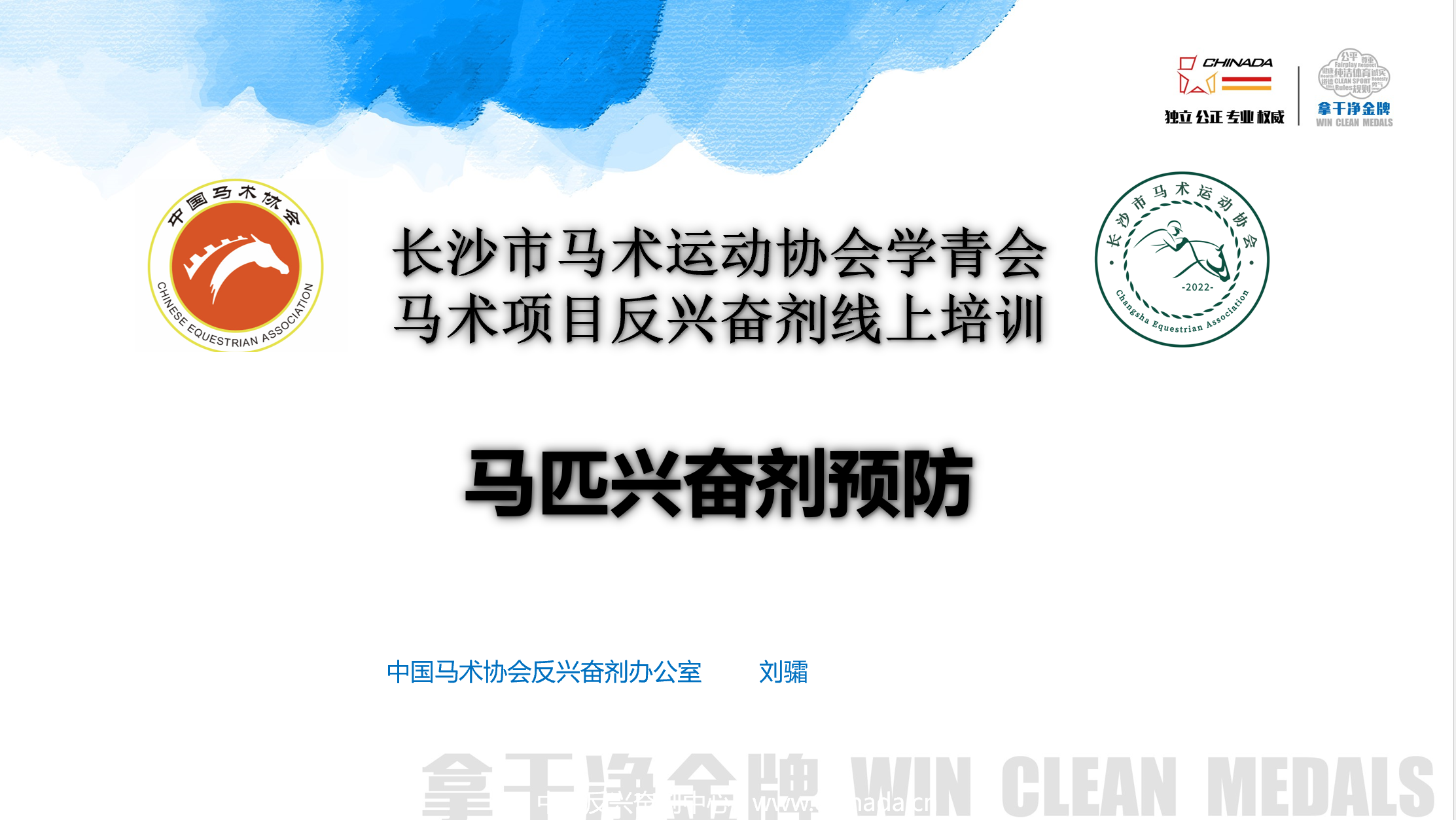 为贯彻落实体育总局关于第一届全国学生(青年)运动会(学青会)反兴奋剂工作要求,完善管理措施,确保兴奋剂问题“零出现”,2023年10月5日,受长沙市马术运动协会委托,中国马术协会委派反兴奋剂部副部长刘骦同志,为湖南长沙队进行了马匹反兴奋剂线上培训。
