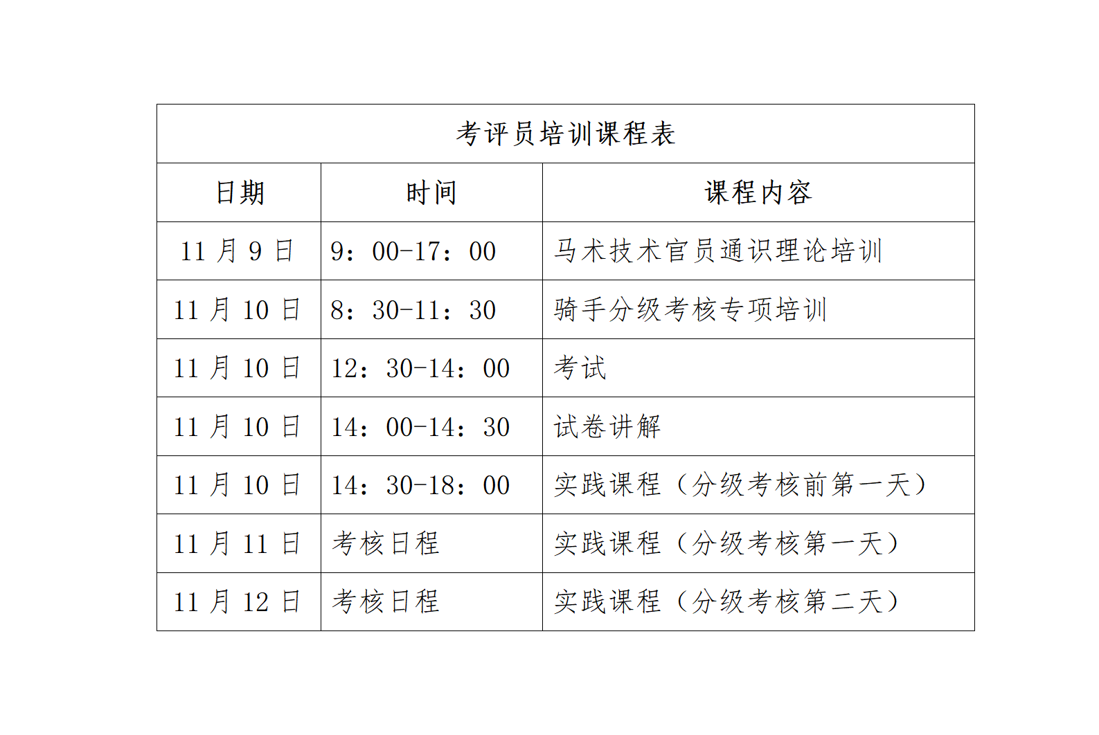 为进一步推进考评员人才队伍建设,我协会将于2023年11月9日-12日在福建省漳州市半月山马术俱乐部举办考评员培训活动,合格者授予相应等级考评员证书。现就本次培训考核相关事宜通知如下: