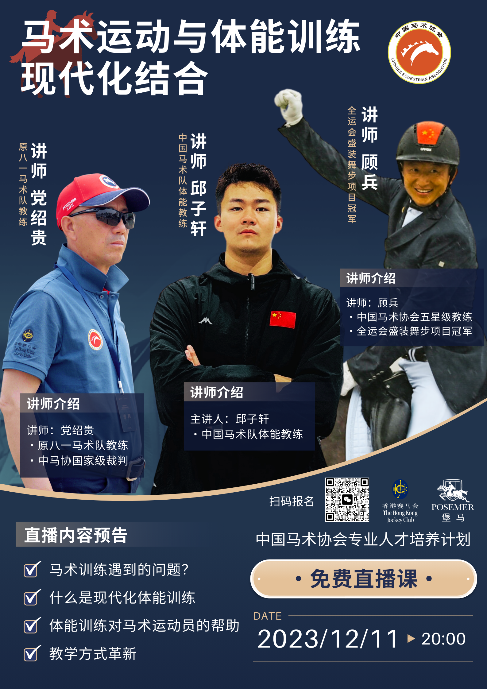 本次直播将于12月11日(周一)晚8点开课,欢迎马术运动的参与者与爱好者们参加,请扫描海报中的二维码报名。