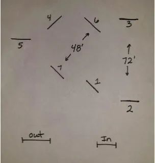 障碍2和障碍3之间的距离为72英尺(约22米),障碍6和障碍7之间的距离为48英尺(约15米)。