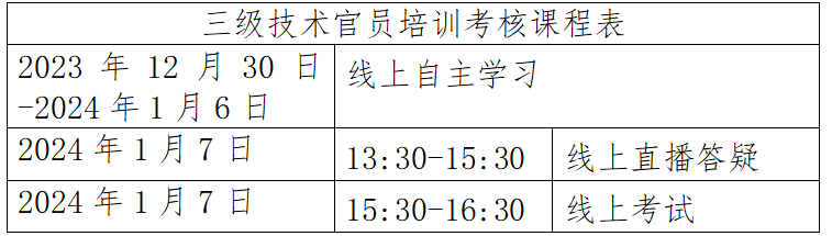 根据马术专业人才培养计划,我协会将与天津市马术运动协会于2023年12月30日-2024年1月7日在线上举办马术场地障碍项目三级技术官员培训考核活动,合格者授予中国马术协会相应等级技术官员证。现就本次培训考核相关事宜通知如下: