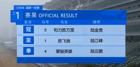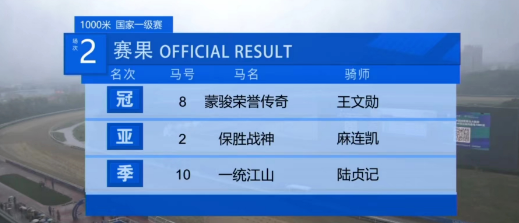 第三场“江城杯”4岁及以上纯血马1000米