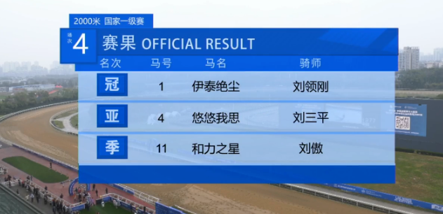 第四场“同心杯”3岁中国出生纯血马2000米赛事,伊泰大漠马业名下“伊泰绝尘”奏凯。